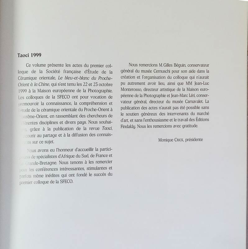 Actes du Colloque de la Societe Francaise d'Etude de la Ceramique Orientale 22-23 Oct.1999, Maison Europeenne de la Photographie