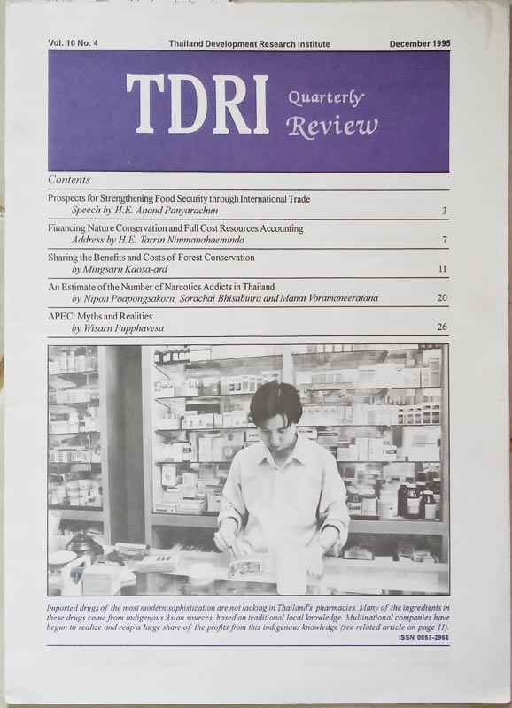 TDRI Quarterly Review Vol. 10 No. 4 1: Prospects for Strengthening Food Security through Int.Trade 2: Financing Nature Conservation & full Cost Resources A/C 3: Sharing the Benefits & Costs of Forest Conversation