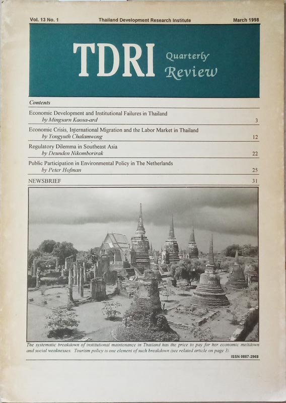 TDRI Quarterly Review Vol. 13 No. 1 1: Economic Develoment & Institutional Failures in Thailand 2: Economic Crisis, International Migration & the Labor Market in Thailand