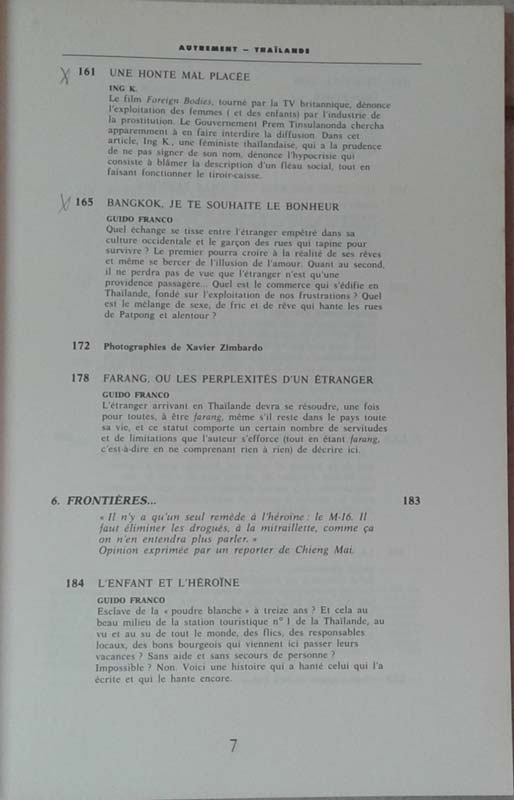 4. Les Laisses-Pour-Compte du Regime 5. Tourisme: La Poule aux Oeufs d'Or 6. Frontieres... 7. Les Aleas de la Religion