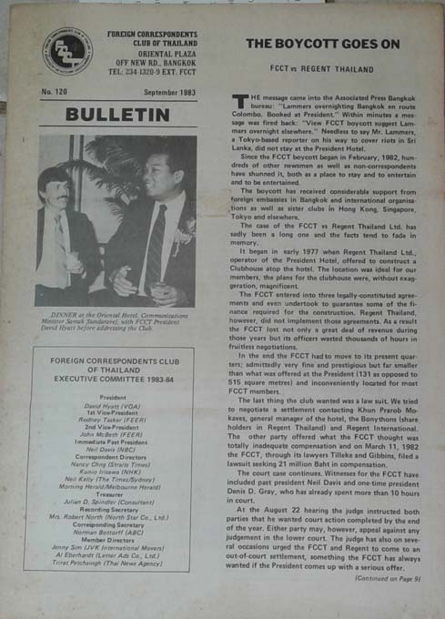 Foreign Correspondent Club of Thailand No. 120 Sept. 1983
