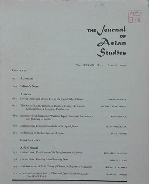 5 Articles of The Journal of Asian Studies Vol. 38/4. 1979 (64 Asia General many Titiles, and other authors)