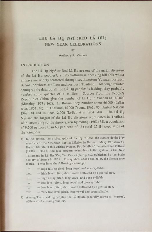 The La Hu Nyi (Red La Hu) New Year Celebrations, The Health needs of Rural Thailand: A Challenge to Traditional University Structure and Function , the Saek Language of Nakhon Phanom Province, A Pact Between Uncle Nephew: Epigraphic & Historical
