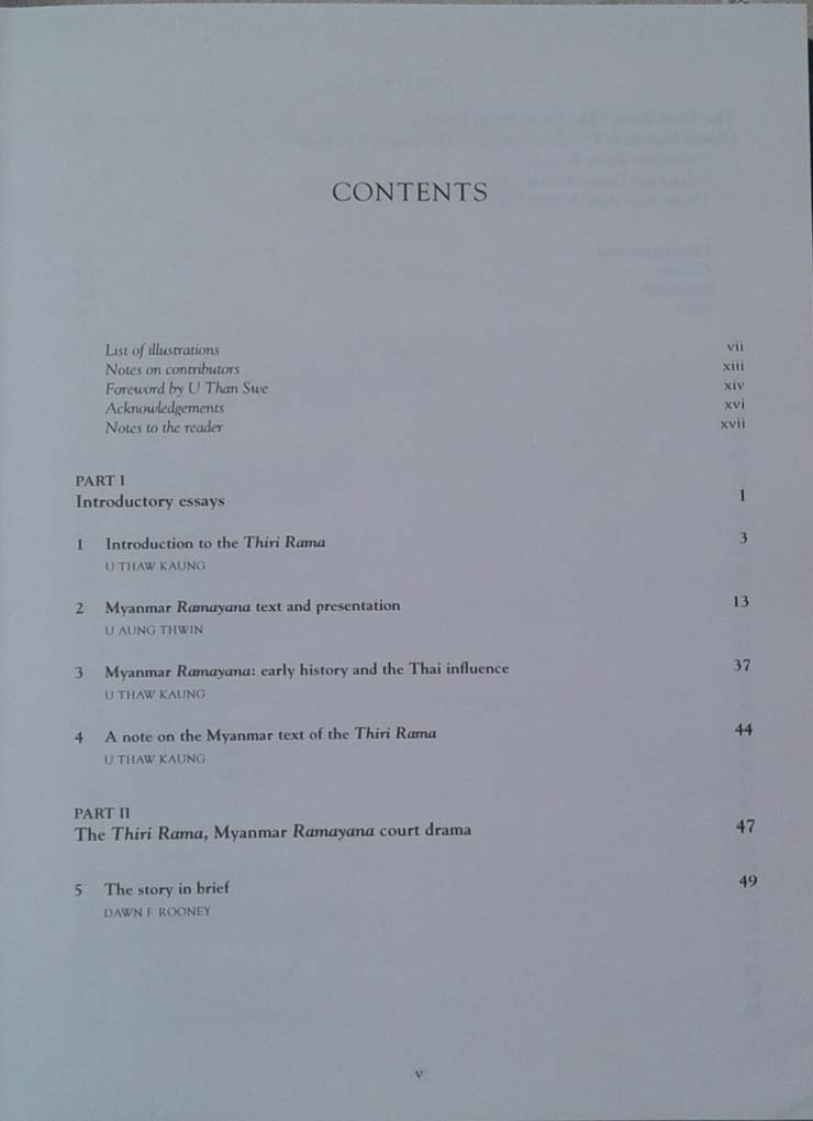 3. Myanmar Ramayana:Early History & the Thai Influence 4. A Note on the Myanmar text of the Thiri Rama Part 2. The Thiri Rama, Myanmar Ramayana Court Drama 5. The Story in Brief