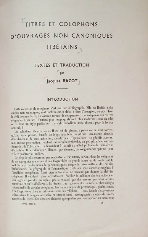 Titres et Colophons D'Ouvrages Non Caniques Tibetains