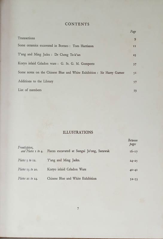 Transactions of The Oriental Ceramic Society 1953-1953: Some Ceramics Excavated in Borneo, T'ang and Ming Jades, Koryo Inlaid Celadon Ware, Some Notes on the Chinese Blue and White Exhibition