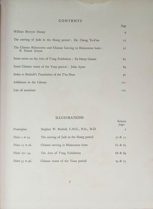 Transactions of The Oriental Ceramic Society 1954-1955: The Carving of Jade in the Shang Period, The Chinese Rhinoceros and Chinese Carving in Rhinoceros Horn, Some Notes on the Arts of T'ang Exhibition, Some Chinese wares of the Yuan Period