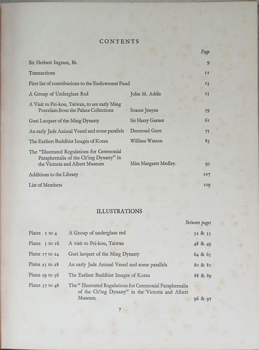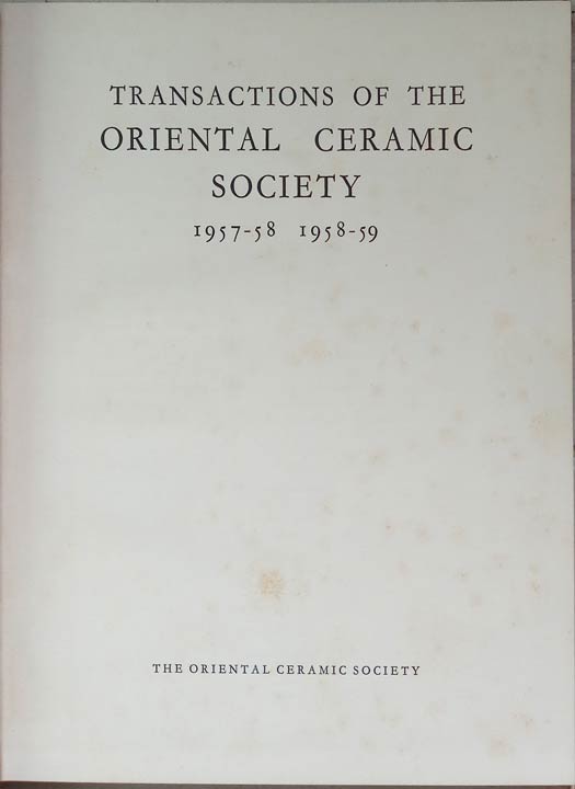 Transactions of The Oriental Ceramic Society 1957-59: A Group of Underglaze Red, A Visit to Pei-kou, Taiwan, to see Early Ming Porcelain from the Palace Collections, Guri Lacquer of the Ming Dynasty, An Early Jade Animal Vessel and some