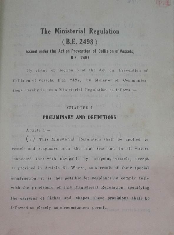 Translation of the Ministerial Regulation (B.E. 2498) on Prevention of Collision of Vessels, Issued under the Act on Prevention of Collision of Vessels, B.E. 24976