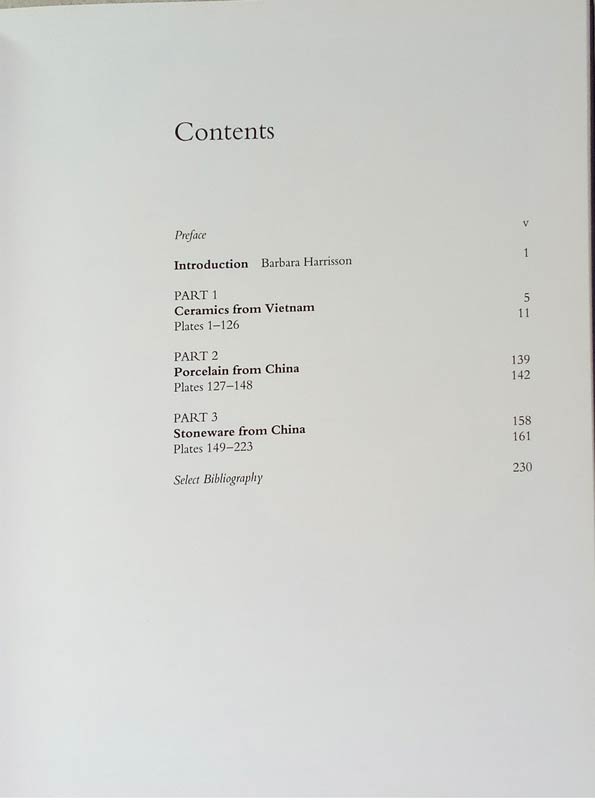 The book covers ceramics from Vietnam, and porcelain and stoneware from China. With an Introduction by Barbara Harrisson.