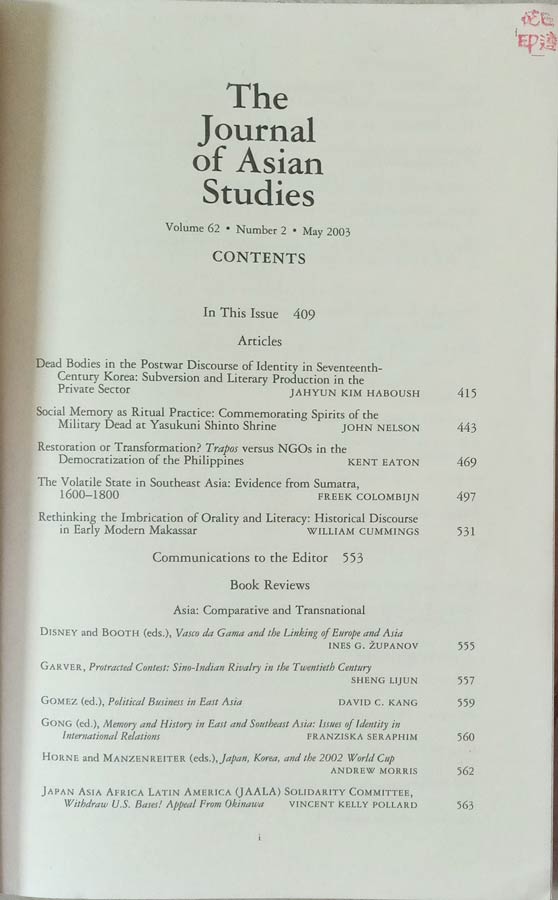 and 4 other Articles of The Journal of Asian Studies Vol. 62/2, May 2003