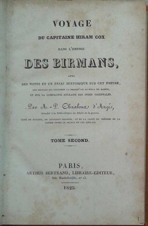 Voyage du Capitaine Hiram Cox dans L'empire des Birmans