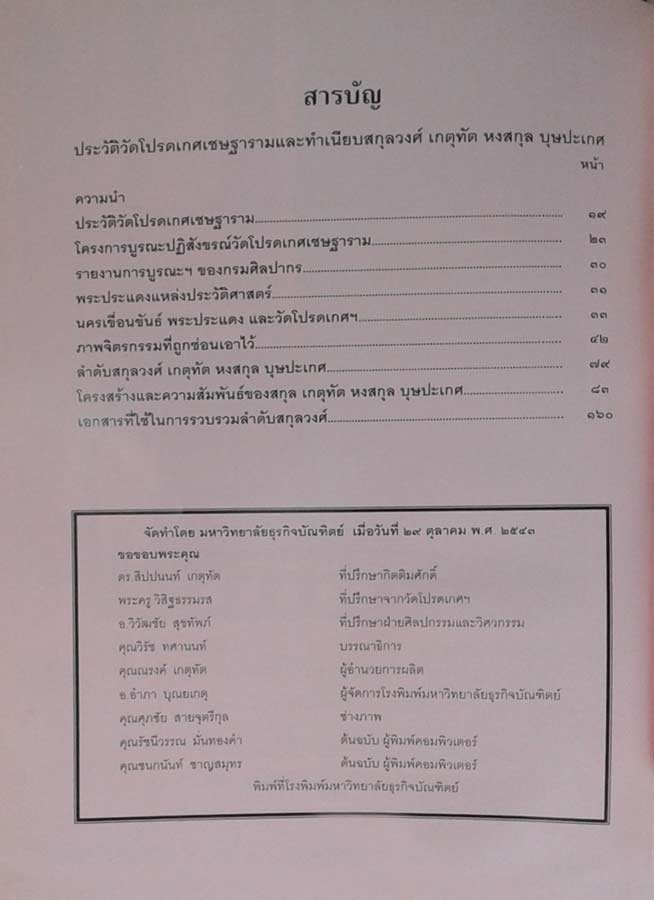 Wat Prodket-Chedtharam lae Thamniab Sakulawong Ketthat Hongsakul Busprakad : The History of Prodket-Chedtharam Temple and the Directory Lineage of Ketthat, Hongsakul and Busprakad