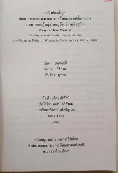 Ways of Isan Weavers: Development of Textiles Production and the Changing Roles of Women in Contemporary Isan Villages