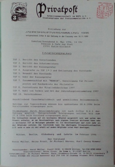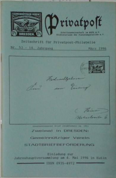 Zeitschrift fur Privatpost-Philatelie Nr. 53 - 14 Jahrgang, Marz 1996